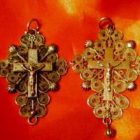 Bijoux régionaux : croix calaisienne ou boulonnaise, avec sa chaine dite "sorcière" et son fermoir