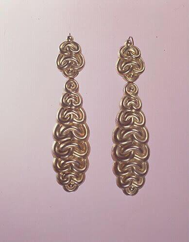 Ces pendants d'oreilles s'appellent les "milanos" ils pèsent chacun 8 g d'or, et certains pouvait atteindre le ras de la clavicule. Ces bijoux sont toujours en vente sur le site de "Virginie"