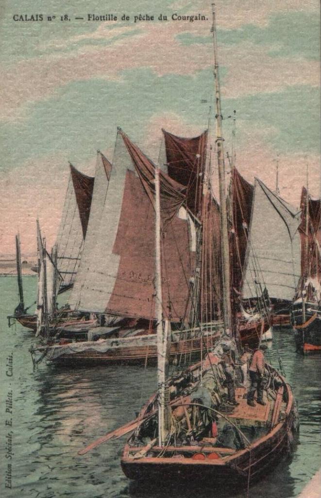 Belle carte postale ancienne de bateaux de pêche calaisiens